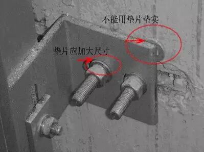 出现预埋件偏离时,可以加大(或加长)预埋锚板方法补救。加长锚板后使用化螺栓固定 。